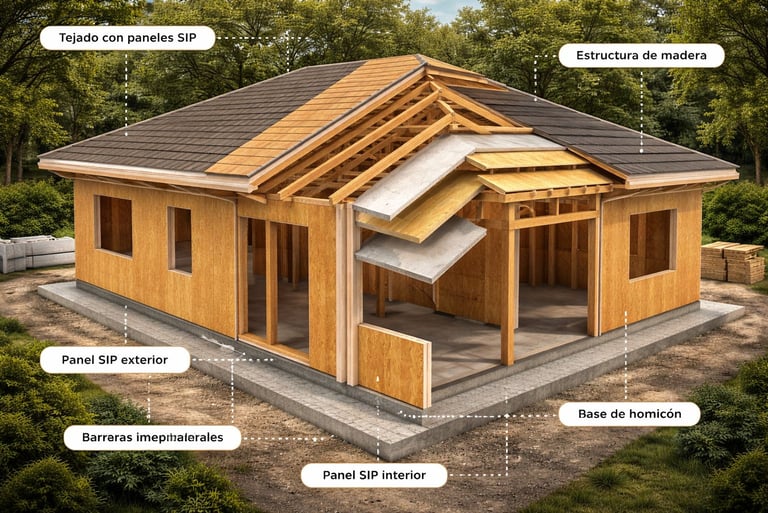 Fabricamos kits de casas personalizados con estructura de madera y sistema SIP.