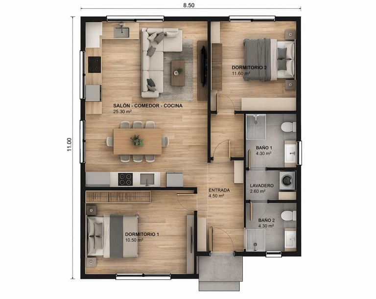 Gracias a su diseño compacto y bien distribuido, esta casa ofrece una excelente relación entre superficie y confort, siendo una opción ideal para quienes buscan una vivienda moderna, eficiente y totalmente personalizable.